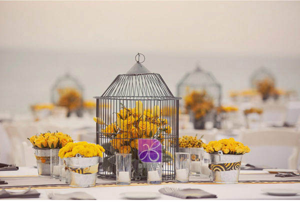 Decorar su lugar con detalles rústicos y clásicos tales como jaulas de pájaros y en parte reflejar un aspecto tradicional de época o ser creativo y crear sus propias decoraciones elegantes de antaño. Utilice centros de mesa con jaulas de pájaros preciosos o regaderas llenas de flores hermosas otra opcion es colocar telares en toda su locación.