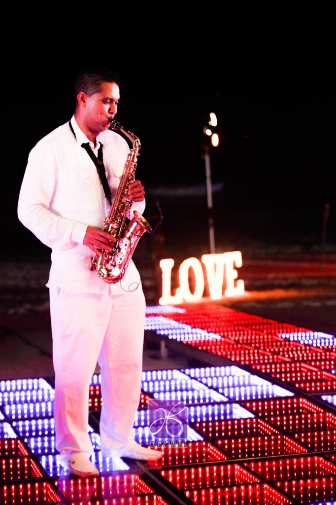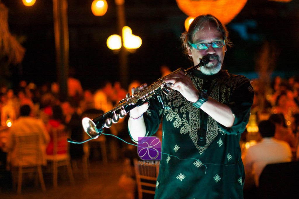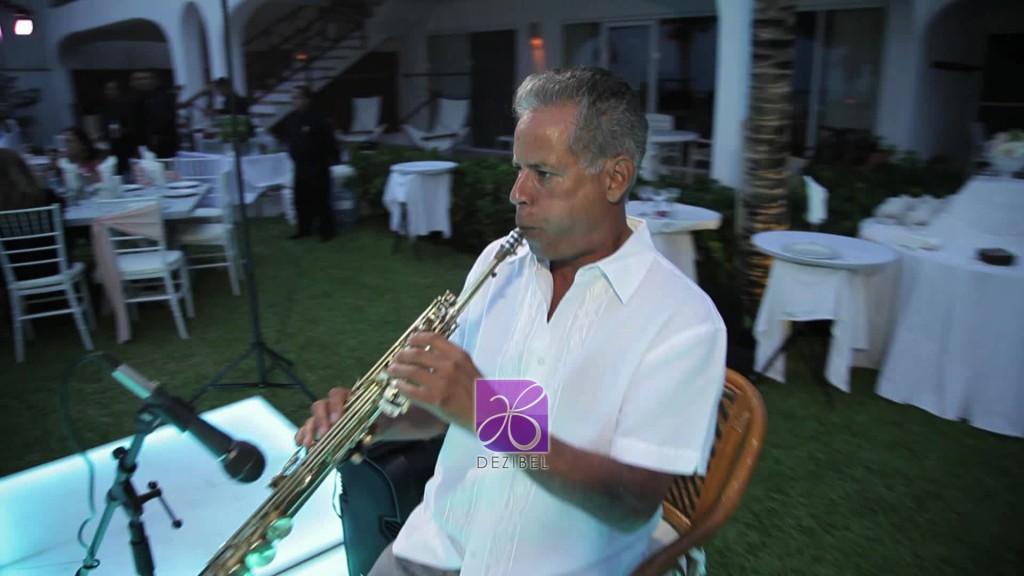 El saxofonista tiene una amplia variedad de música de su repertorio y está dispuesto a hacer frente a peticiones individuales. ya sea proporcionando música de fondo sutil de salón en la copa de bienvenida, o mezclándose con los invitados en la pista de baile.